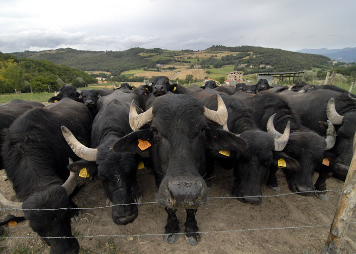 I suoi avi mungevano le bufale nella lontana terra del Sud, in Campania. Poi venne l'emigrazione, l'adattamento ad un nuovo territorio, in quella Umbria da cui ha ereditato una capacità diversa di guardare all'impresa, una possibilità di slancio in un settore in questo contesto sconosciuto, un ambiente incontaminato dove fare pascolare e crescere quelle bufale brune fino ad allora abituate alla brezza del mare. Ma la fresca rugiada del mattino non é disdegnata da questi animali dal preziosissimo latte. Vale la pena quindi di mettersi alla prova. Il padre é al fianco di Gianluca Paolo e sostiene il figlio credendo in una sfida più grande di loro e probabilmente più grande dell'intera mandria di bufale. Una pietra dopo l'altra, nella terra di San Francesco, vien su la fattoria e si compie un piccolo grande miracolo: produrre, trasformare e diffondere attraverso la vendita diretta la mozzarella di bufala in Umbria. E subito sono trecce, bocconcini, formaggi. Presto saranno prodotti di carne di bufala e oggetti di pelle di bufala. In una esperienza che il giovane imprenditore definisce fantastica, quella della vendita diretta, sia in azienda, tra le verdi vallate dell'Umbria, sia nei mercatini di Campagna Amica ed infine sul sito internet. Click! E la bufala dalla rete é già in tavola. Come una occasione di novità per chi con un click fa cadere la mozzarella di bufala dalla rete alla tavola, senza nessuna intermediazione.